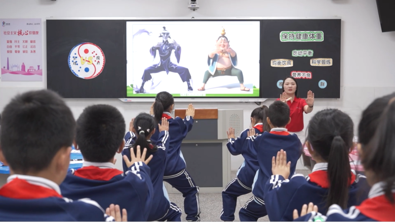 湖北省审核专家在“推荐理由”中指出,该课例以《哪吒》电影中的角色哪吒、申公豹、太乙真人等为主线,通过“健康专家”指导学生计算健康体重、分析饮食和运动问题、设计营养食谱、体验吃动平衡等任务,让学生对“均衡饮食”“科学锻炼”以及“吃动平衡”有了深刻的理解,并认识到保持健康体重的重要性,树立了健康生活的观念。整节课设计理念新颖、情景设置巧妙、互动形式多样、课堂氛围活跃。此外,授课教师通过引入人工智能助手,以AI赋能体育教学创新课堂,大大增强了学生的参与度与体验感,保证了学生的运动量,让室内体育课不再枯燥无味,而是有趣、有量、有获。