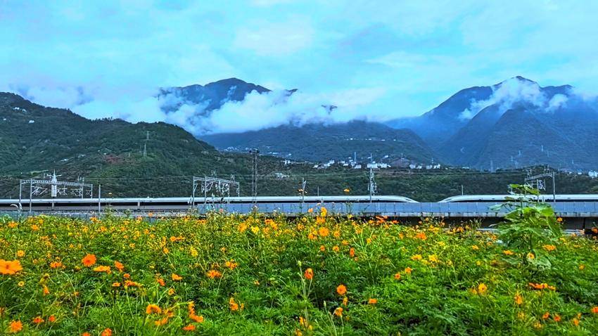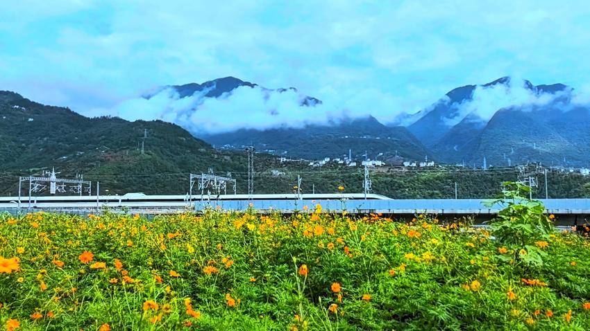 群峰垂首,看银线缝补崖壁褶皱。雾在玻璃上洇开淡墨,写“远”,写“归”——曾困在褶皱里的等待,正顺着钢轨攀向云端。