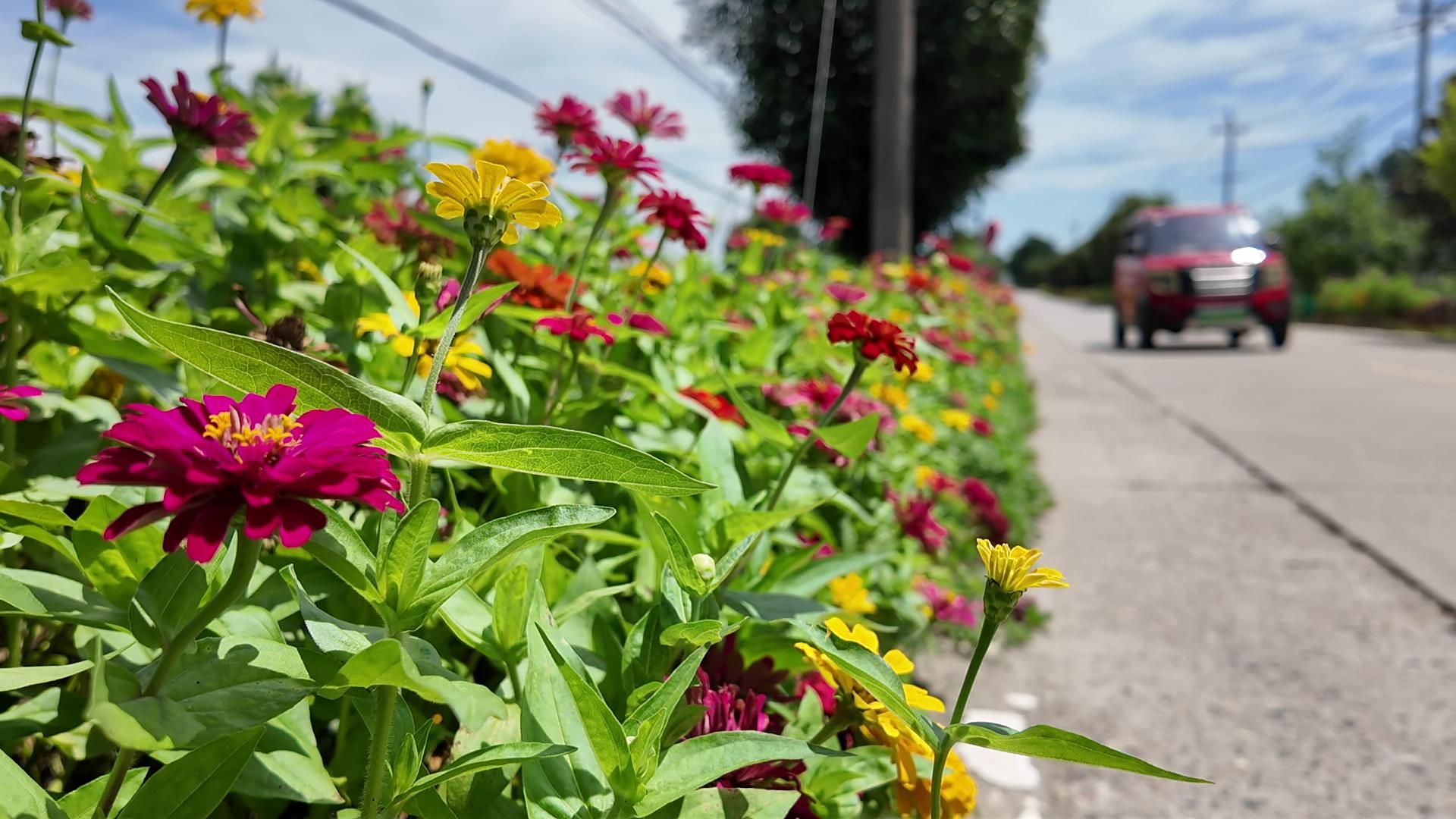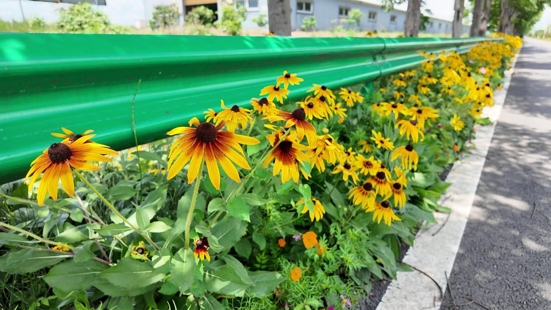 驾驶在顾家店镇轿罗路、枝姚路等路段,成片的百日草、硫华菊等花草随风摇曳,像给道路镶上了彩色的花边,把村庄装点得生机盎然,让人忍不住放慢车速,沉醉在这幅乡村美景之中。
