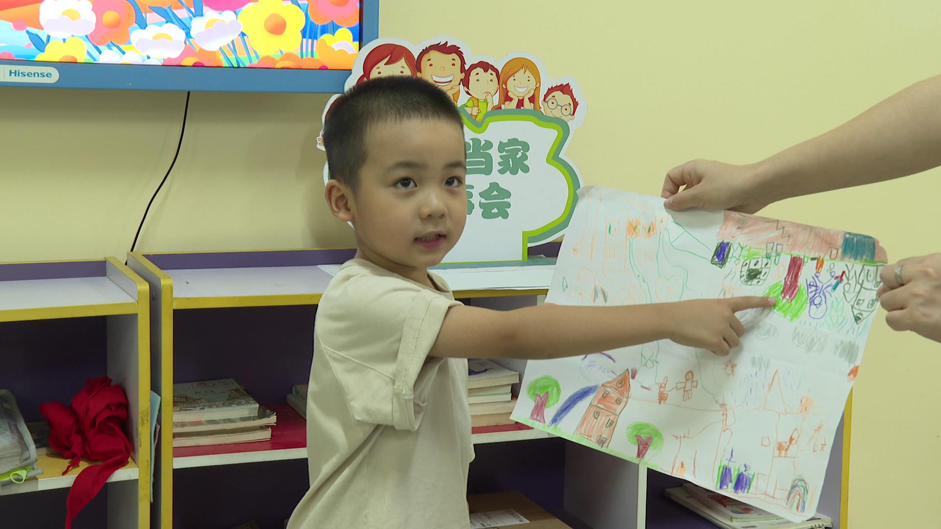 “这是我画的社区,这里有一棵大大的树,我希望我们的社区能变成这样。”小朋友向木易指着自己的画作说道。另一位参与者上官欣奕则表示:“我希望社区能增加医疗设备和提示语,比如爱护花草、节约用水等,让环境更美好。”