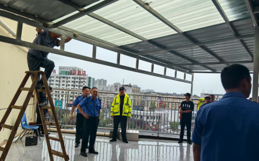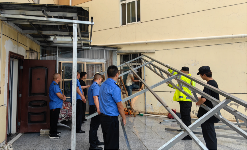 为进一步规范城市建设秩序,严厉打击违法建设行为,8月12日,孝昌县城市管理综合执法大队组织人员、设备,依法拆除位于城区北京路某小区楼顶擅自搭建的阳光棚。