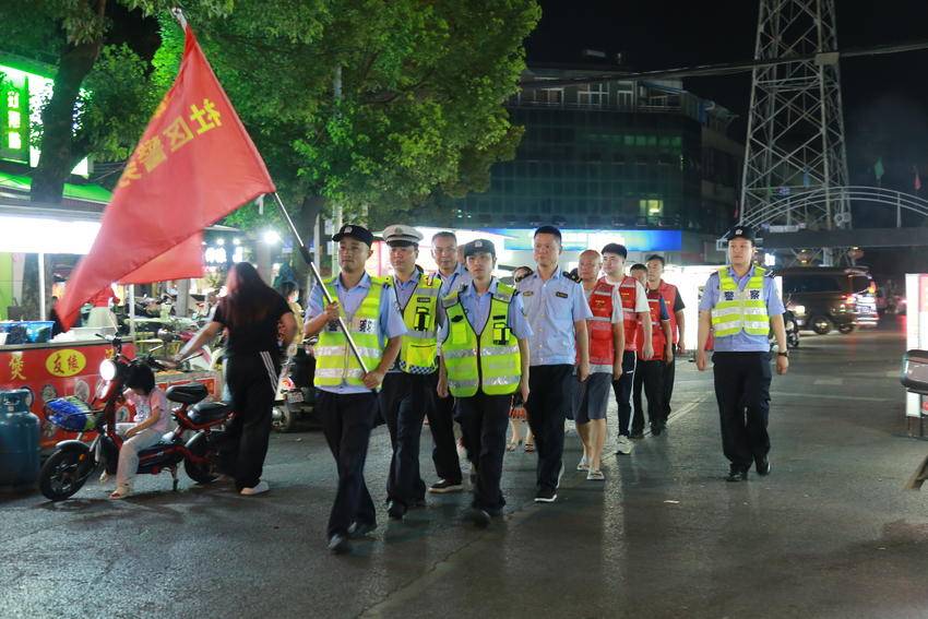 夜幕下的夜市摊点,是城市在经历白天辛劳之后的温暖与慰藉。黄陂区公安分局前川街环城派出所民警王一为每晚八点都会组织“环城义警”在潘家田夜市开展夜巡,守住这人间烟火气。在街边路灯和炉火的映衬下,“警察蓝”与“义警红”交织成了新时代的美丽“枫”景。