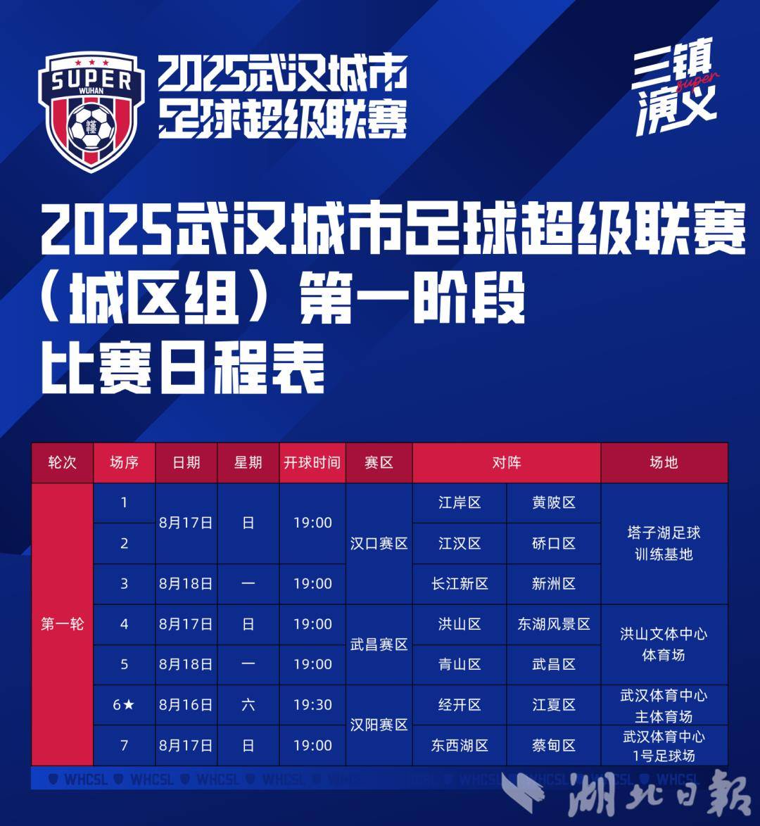 湖北日报讯(记者汪洋)从武汉城市足球超级联赛(简称“汉超”)微信公众号获悉,定于8月16日19:30开球的汉超揭幕战,由武汉经开区对阵江夏。