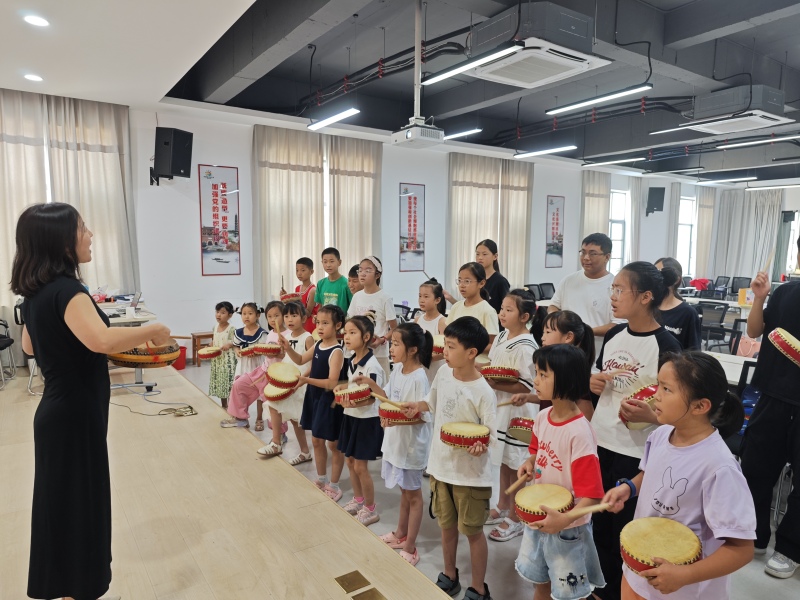 孩子们学得专注,有的虽跟不上节拍,却始终坚持不懈,有的很快掌握窍门,敲出的“咚咚锵”有模有样。最后,黎老师带着小朋友们以铿锵有力的鼓点演绎社会主义核心价值观的韵律,孩子们清澈纯真的歌声与激昂澎湃的鼓声相互交融,谱写了一曲传统与现代完美结合的“非遗交响乐”。这动人的场景,既展现了非物质文化遗产的永恒魅力,又彰显了新时代精神文明建设的丰硕成果。