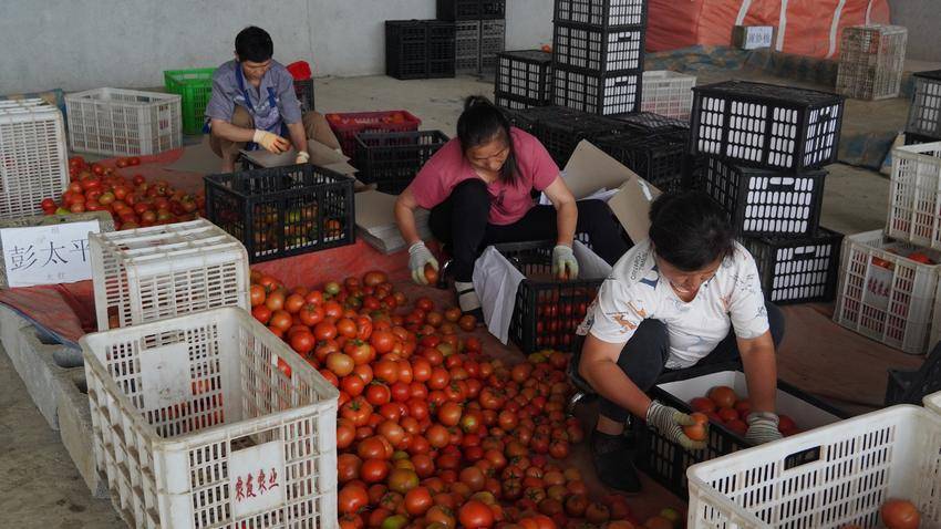 湖北日报客户端讯(通讯员 徐可、周琦)眼下,鹤峰县中营镇岩屋冲村的450亩西红柿陆续挂果成熟,田间地头、生产车间农户们忙着采摘、分拣、销售,累累硕果不仅映红了田间地头,更照亮了农户们的增收致富路。