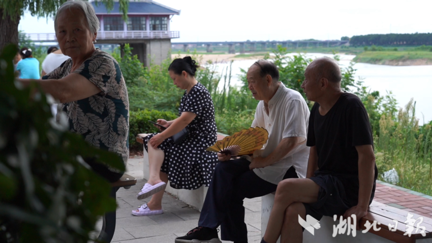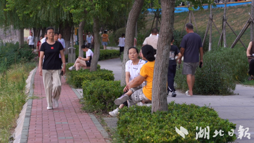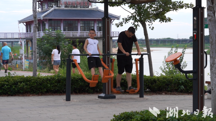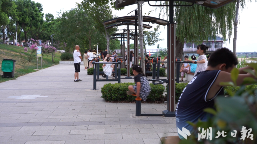 近日武汉降水结束,晴热慢慢回归。8月13日傍晚6点,夕阳的余晖为举水河镀上一层粉色,新洲区举水河滩公园的入口处已陆续迎来纳凉消暑的市民。记者沿着堤岸漫步,晚风裹挟着河水的清凉扑面而来,白日的燥热瞬间消散,耳畔传来的是此起彼伏的欢笑声与蝉鸣交织的交响曲。
