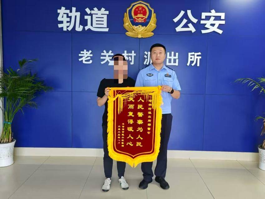 17时许,在民警邢苏文的协调下,失主汪女士在老关村派出所见到了拾金不昧的侯女士,并一再表示感谢。8月11日,汪女士委托其爱人将一面印有“人民警察为人民 失而复得暖人心”的锦旗送到老关村派出所,再次表达自己的感谢。