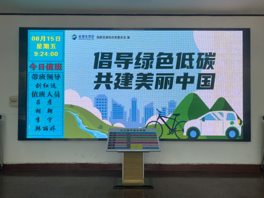 应城市资规局在该单位电子屏滚动播放8.15全国生态日主题标语和生态保护动画短片,生动阐释绿色发展理念;走廊墙面悬挂应城市生态修复成果展、国土空间规划示意图等主题海报,展现本地生态保护实践;发放《生态文明知识手册》,宣传法律法规、环保常识及自然资源管理岗位践行要点;公共区域张贴“节约用纸”“垃圾分类”等温馨提示贴,推动绿色理念融入日常。