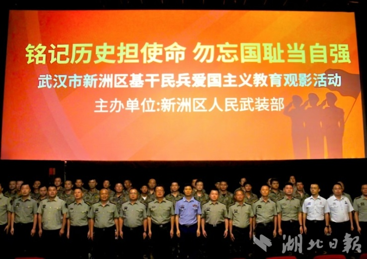 为纪念中国人民抗日战争暨世界反法西斯战争胜利80周年,大力弘扬爱国主义精神,赓续红色血脉,8月13日,新洲区人民武装部组织机关人员、专武干部及基干民兵骨干集中观看了红色主题电影《南京照相馆》。