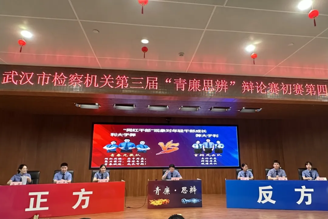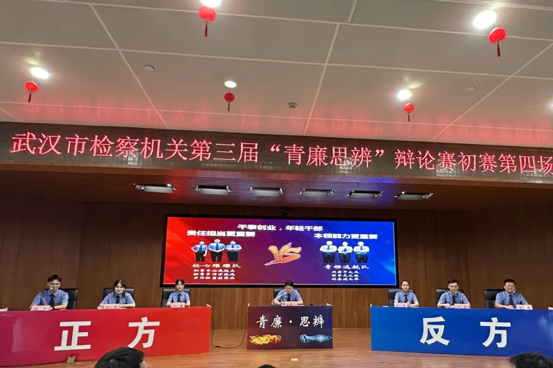为深入落实“干部素质提升年”工作要求,扎实推进全市检察机关清廉战线建设,提升青年干警综合素能和业务水平,8月15日上午,武汉市检察机关第三届“青廉·思辨”辩论赛初赛第四场在黄陂区人民检察院顺利开赛。活动由黄陂区检察院第六检察部检察官陈琛主持。