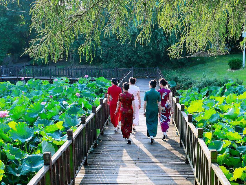 游客们或执伞轻倚栏杆,捕捉“雨打荷叶跳珠”的灵动;或俯身近观莲蓬,惊叹“出淤泥而不染”的禅意。抖音达人们更以荷为幕,创作出“荷裳舞袂”“莲动下渔舟”等创意短视频,让凤凰湖的夏日荷韵跨越屏幕,绽放于万千网友的心田。