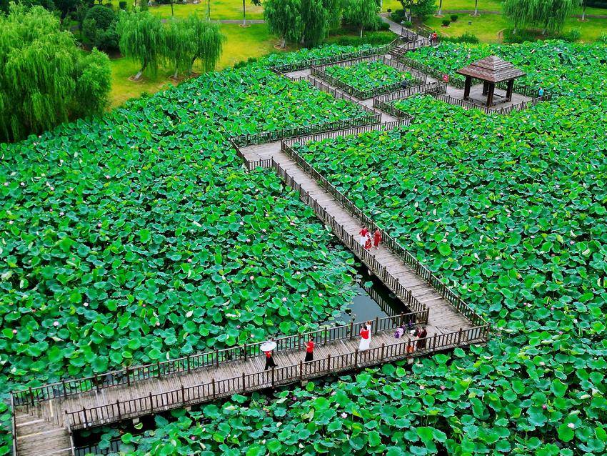 夏日炎炎,荆门市凤凰湖湿地公园却以一抹清新脱俗的绿意,和满湖竞相绽放的荷花,迎接着每一位寻幽探胜的市民和游人,这里正上演着一场“接天莲叶无穷碧,映日荷花别样红”的视觉盛宴。碧绿的荷叶如盘,托起朵朵娇艳欲滴的荷花,它们在阳光的照耀下更显晶莹剔透,仿佛是大自然最精致的调色盘,绘就了一幅幅动人心魄的画卷。