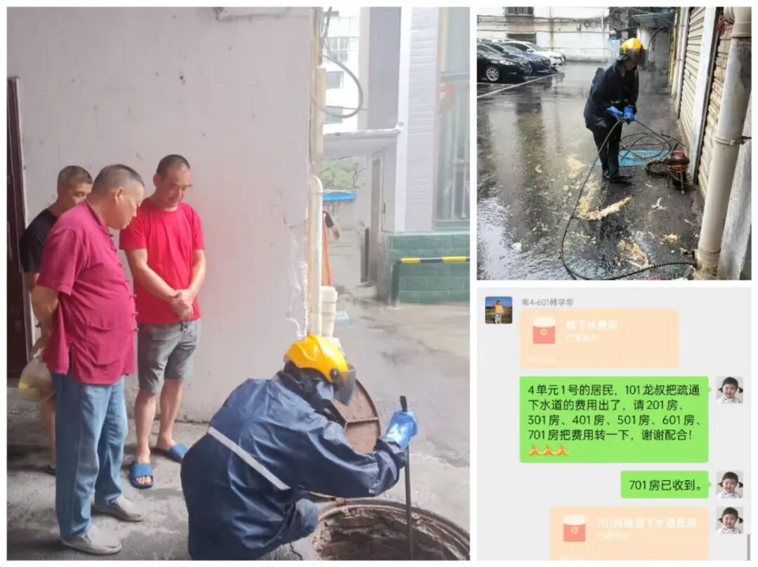很快,专业师傅带着工具上门,仅用2小时就完成了管道疏通,社区工作人员还一同清理了外漏的污水。看着干净整洁的过道和畅通的管道,居民们纷纷点赞:“多亏了社区帮忙,不然这堵心事不知道要拖到什么时候!”
