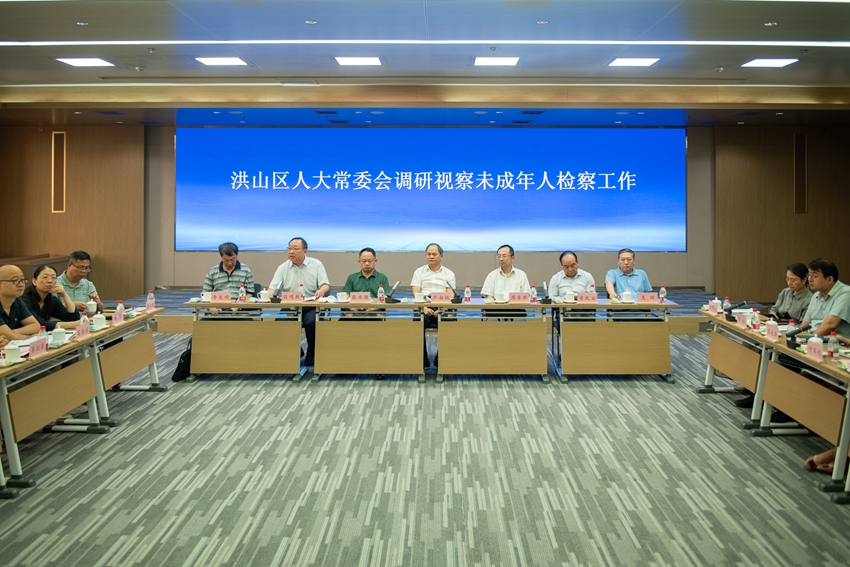 8月12日下午,洪山区人大常委会党组书记、主任严湘桃带队专题调研视察洪山区人民检察院未成年人检察工作。区人大常委会副主任,各专门(工作)委员会主任委员(主任),办公室主任、副主任,监察司法和法制委员会部分委员和人大代表,洪山区检察院党组书记、检察长刘国媛及相关领导参加调研。