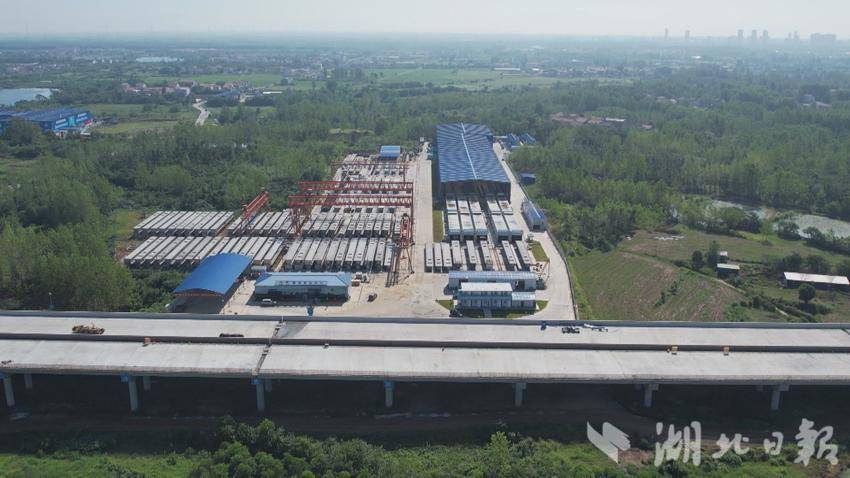 为了提高工程的整体质量,提升施工速度,在新洲西高架桥桥梁工程中,施工单位运用了预制箱梁技术、旋挖钻技术、支架现浇技术等多种施工工艺。新洲西高架桥旁,占地约120亩的智慧梁厂内,30米箱梁在5条全自动化流水线上有序流转,预制完成后通过龙门吊直送新洲西高架桥施工现场,大幅提升施工效率、箱梁架设进度。