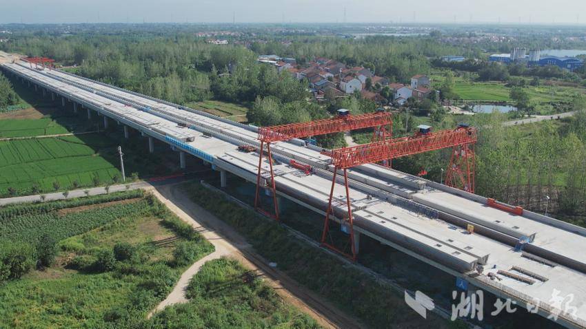 正在建设的新洲西高架桥,全长4601.3米,预计2026年2月份完成全部箱梁架设。