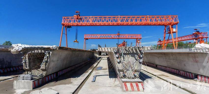 “在新洲段,根据线路施工计划,就近建设的梁厂总共有两座,一座是位于新洲西高架桥旁的智慧梁厂,另一座是位于凤凰镇的凤凰梁场,预制箱梁极大地提升了建设效率,可以按照计划完成箱梁预制。”二工区项目总工程师刘龙军介绍道。