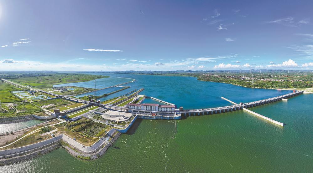这是8月15日无人机拍摄的汉江雅口航运枢纽工程全貌。该工程是以航运为主,结合发电,兼顾旅游、灌溉等水资源综合开发功能,总投资33.5亿元,6台机组于2023年6月全部投产发电,有力促进了汉江丹江口以下千吨级航道形成,提升了湖北内河航运能力。(来源:襄阳日报 郑新涛 摄)