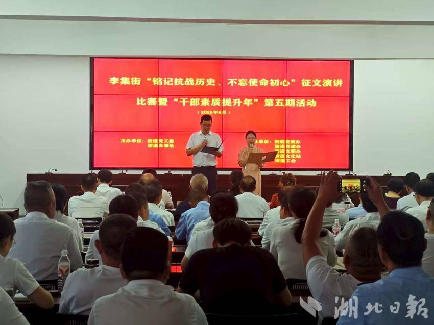 据了解,本次活动由李集街道党工委、办事处主办,街道党政办、党建办、文明办、文化站、工会联合承办,是李集街“干部素质提升年”系列行动的第五场,通过“征文+演讲+互动”的立体形式,推动抗战精神从历史书页走向现实实践。