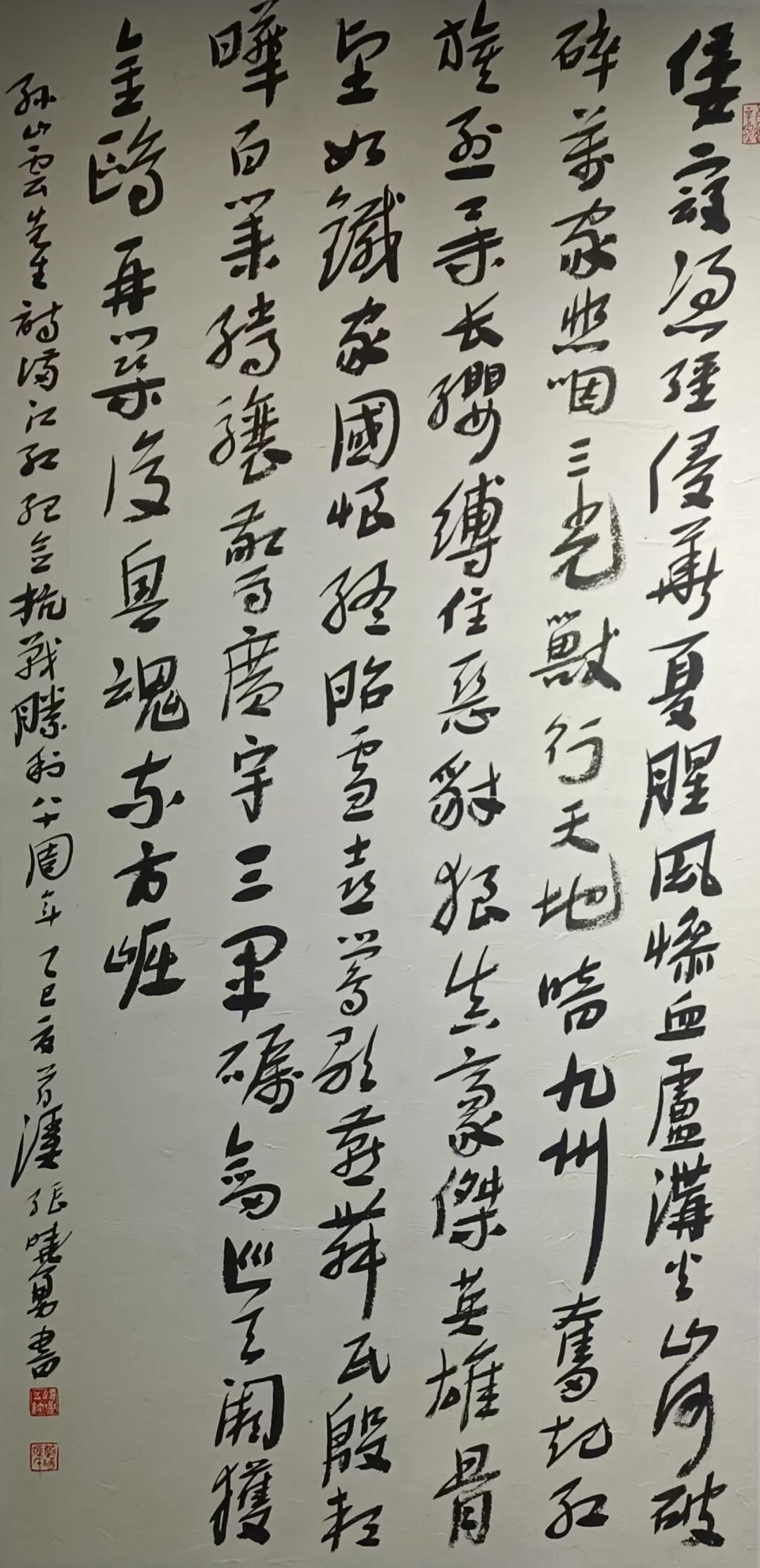 八十年弹指一挥间,那段气壮山河、可歌可泣的抗战历史,早已融入中华民族的血脉,成为我们砥砺前行的不竭动力。素有“艾都”美誉的蕲春大地,在那艰苦卓绝的峥嵘岁月里,同样浸染了革命先烈的热血,铭刻着浴血奋战的印记,上演过无数可歌可泣的英雄壮举。为铭记历史、珍爱和平,由蕲春县委宣传部、县文学艺术界联合会主办,县文化馆、县老年书画家协会、县书法家协会、县美术家协会承办的“纪念中国人民抗日战争暨世界反法西斯战争胜利八十周年书画作品展”,8月15日上午在蕲春县文化馆开幕。