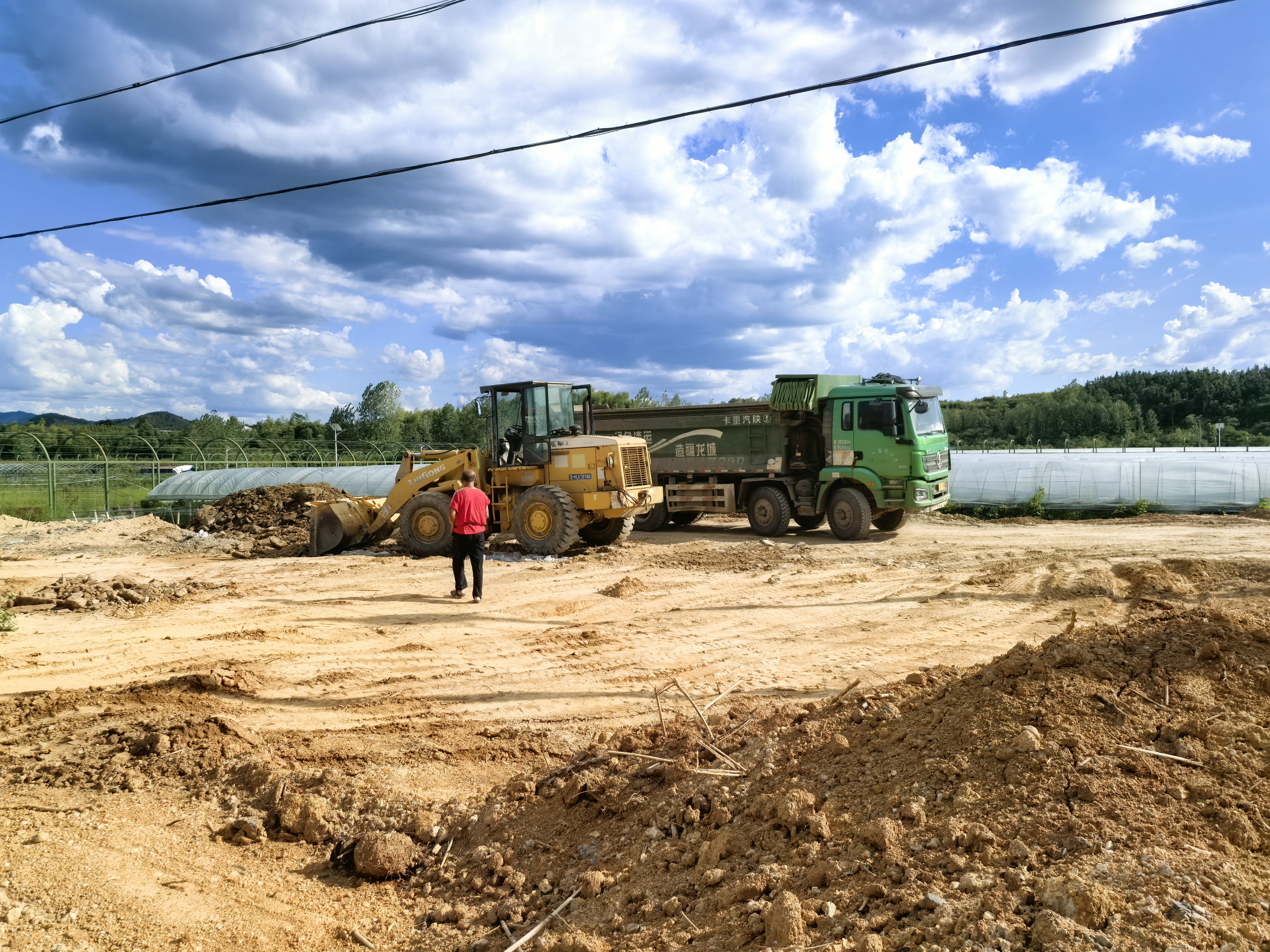 在S356省道边,一处2000平方米的生态停车场正在平整场地,还有一处拱形“水果廊道”也正在建设中。