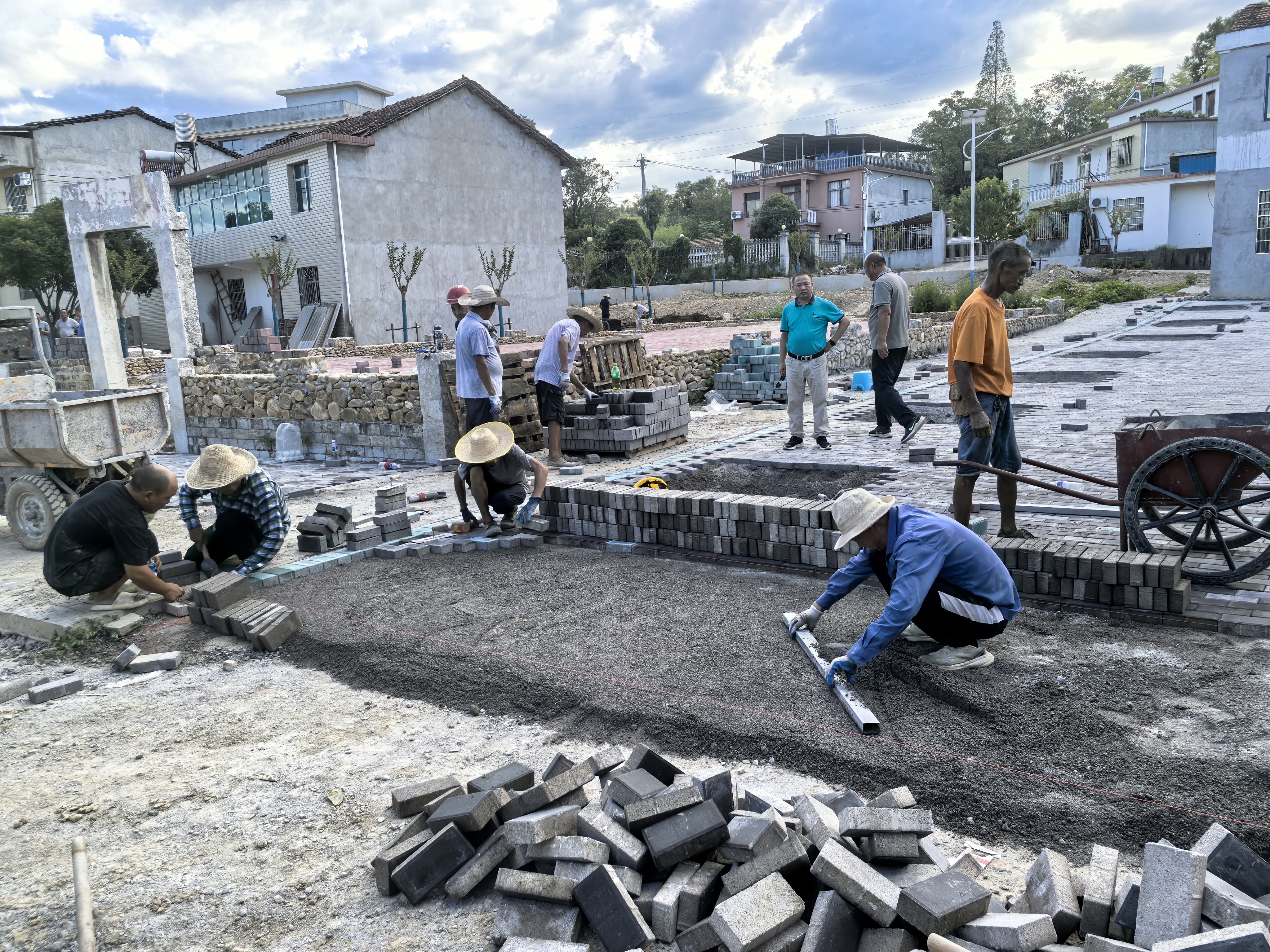 同时,乡村客厅旁紧邻网红河的隔墙陈组村湾,也被纳入重点整治范围。修葺一新的活动广场正在进入收尾工程,10余名工人正在铺设广场周边的生态步道,一侧墙面也做成了“修旧如旧”古味十足的造型。