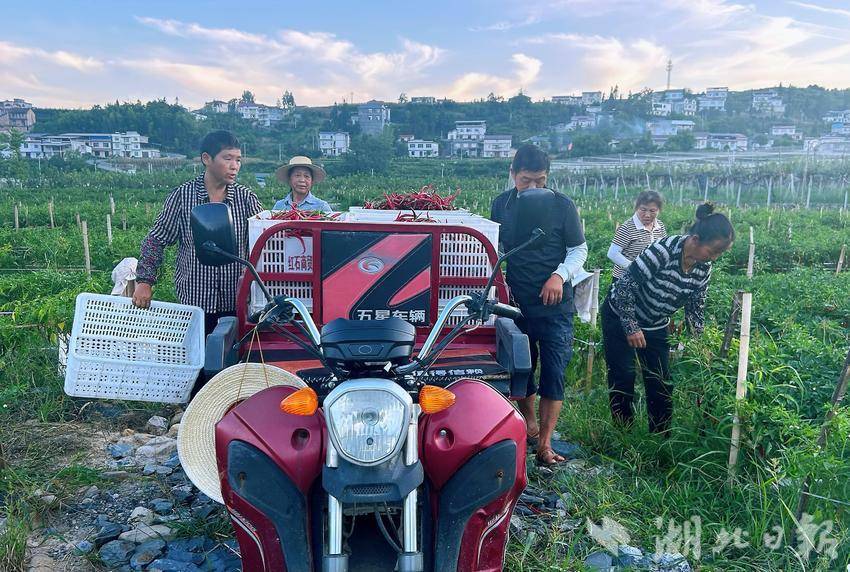 湖北日报客户端讯(通讯员葛进东、方鑫 )8月19日,金秋时节,建始县长梁镇红石垭社区弥漫着浓郁的椒香。100余亩辣椒田硕果累累,串串红果挂满枝头,村民们忙着采摘、装箱,脸上洋溢着丰收的喜悦。