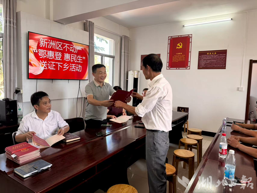 旧街街道是新洲区农业重点街镇,集体土地资源丰富,但因历史跨度长、遗留问题复杂,集体土地所有权确权发证一直是基层治理的难点。新洲区不动产登记中心积极转变服务模式,由“被动受理”转为“主动上门”,在村委会设立临时服务点,组织工作人员现场核验资料、答疑解惑、高效办理,实现村集体“足不出村”就能领到“红本本”,显著提升了办事效率和群众获得感。