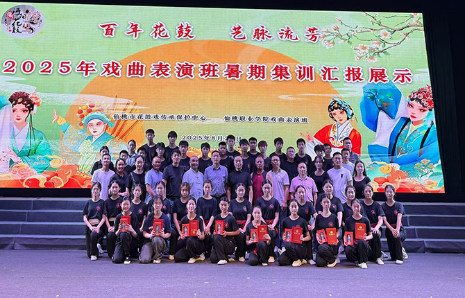 湖北日报客户端讯(通讯员汤平)8月20日上午,一场精彩纷呈的花鼓戏表演班暑期集训汇报展示活动在市花鼓戏传承保护中心假日剧场顺利举行。这届戏曲表演班是仙桃市花鼓戏传承保护中心和仙桃职业学院联合开设的,旨在培养花鼓戏后备人才,此次集训为期40天。本次汇报不仅是对学员们整个暑期集训成果的一次集中检验,更让现场观众感受到了花鼓戏这一非遗文化艺术的独特魅力与年轻传承者的蓬勃朝气。