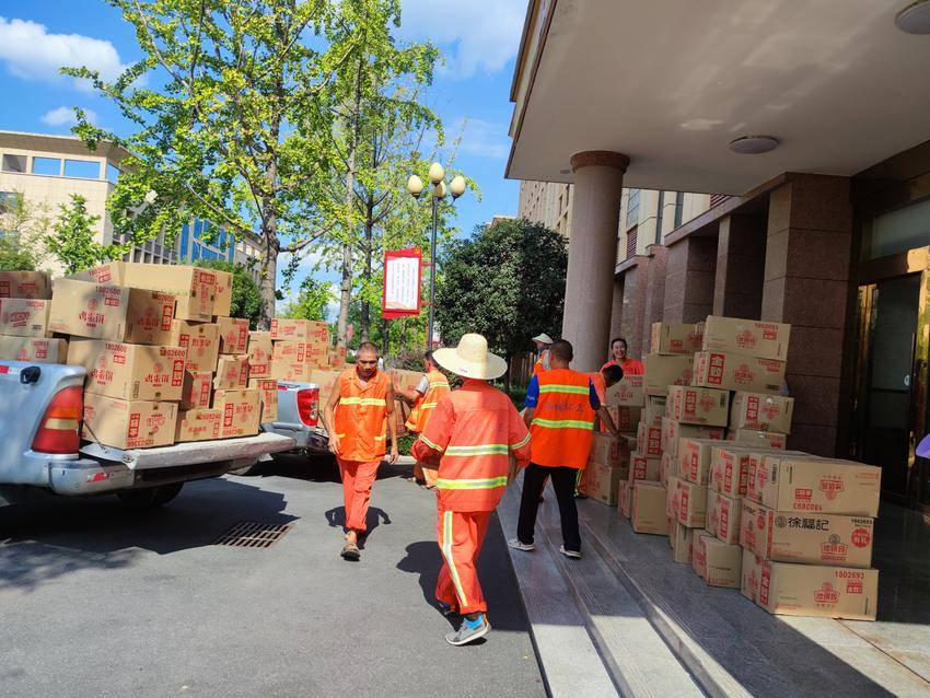 活动现场,20名环卫工人顶着高温有序搬运物资,尽管汗水浸湿衣衫,脸上却洋溢着感动的笑容。当一箱箱满载爱心的食品送到环卫女职工手中时,大家纷纷表示,这份“特别的爱”让她们倍感温暖,也激励着自己更好地投入到城市环境卫生工作中。