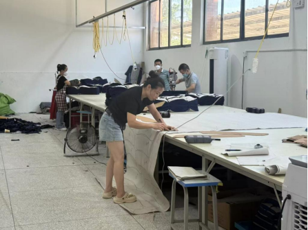 这样的场景,在团陂镇宜方服装厂每天都在上演。作为乡镇里的“巾帼就业基地”,服装厂共有上下三层楼,一楼主要负责衣服的包装、裁剪和整烫,二楼主要负责衣服的缝制,而三楼则是专为儿童设置的休息区。宜方服装产八成以上的员工都是像王大姐这样的留守妇女,自成立以来,服装厂就把“让留守妇女在家门口实现价值”作为核心事,不断了解各村妇女们的难处,最终将厂房设置在靠近学校且交通便利的位置,方便留守妇女每天接送孩子,也促成了“灵活上班+技能培训+暖心服务”的帮扶模式。