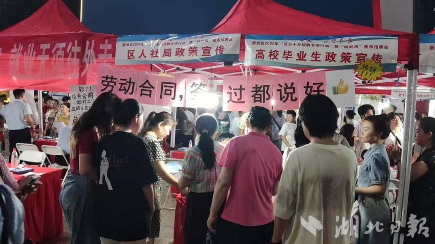 8月20日晚上六点半,武汉市新洲区人社局在新洲摩尔城举办2025年“百日千万招聘专项行动”夜市现场招聘会。此次招聘会采用“夜间经济 + 就业服务”的创新模式,为企业和求职者搭建起高效对接的桥梁。