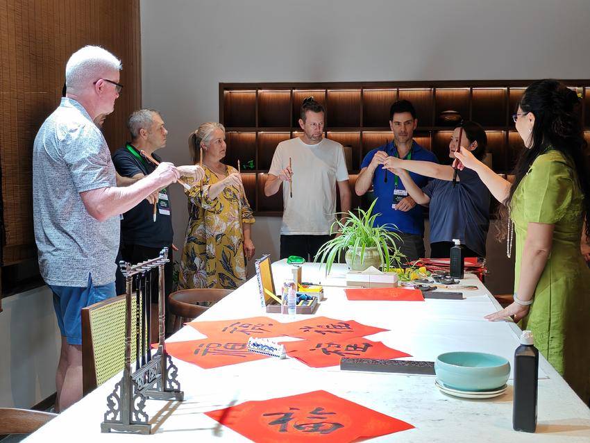 这场活动,在紧凑的节奏里满是体验的乐趣,友人们不仅亲手完成了“福”字作品,也是京山这座城市为他们留下的纪念,更在笔墨之间触摸到了中华优秀传统文化的温度。