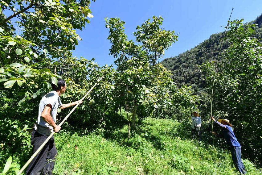 “我们从8月下旬开始采摘,预计到9月中旬结束。每天至少需要30名劳力,整个采摘期劳务支出约6万元。”樟木沟村核桃种植基地负责人胡富军介绍说。