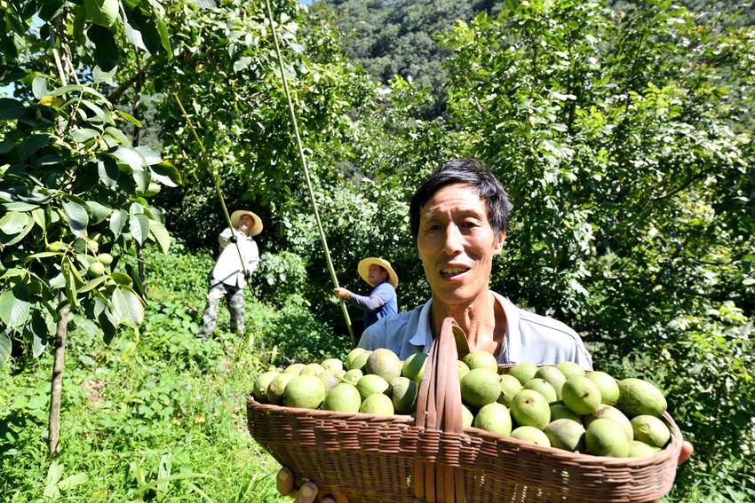 “这几年效益还比较好,我们每亩地大概年产干果150斤左右,全年总产量7万多斤。”褚宗新算了一笔丰收账,“按现在的市场价格,鲜核桃能卖到10块钱一斤,每年收入在75万元左右。”