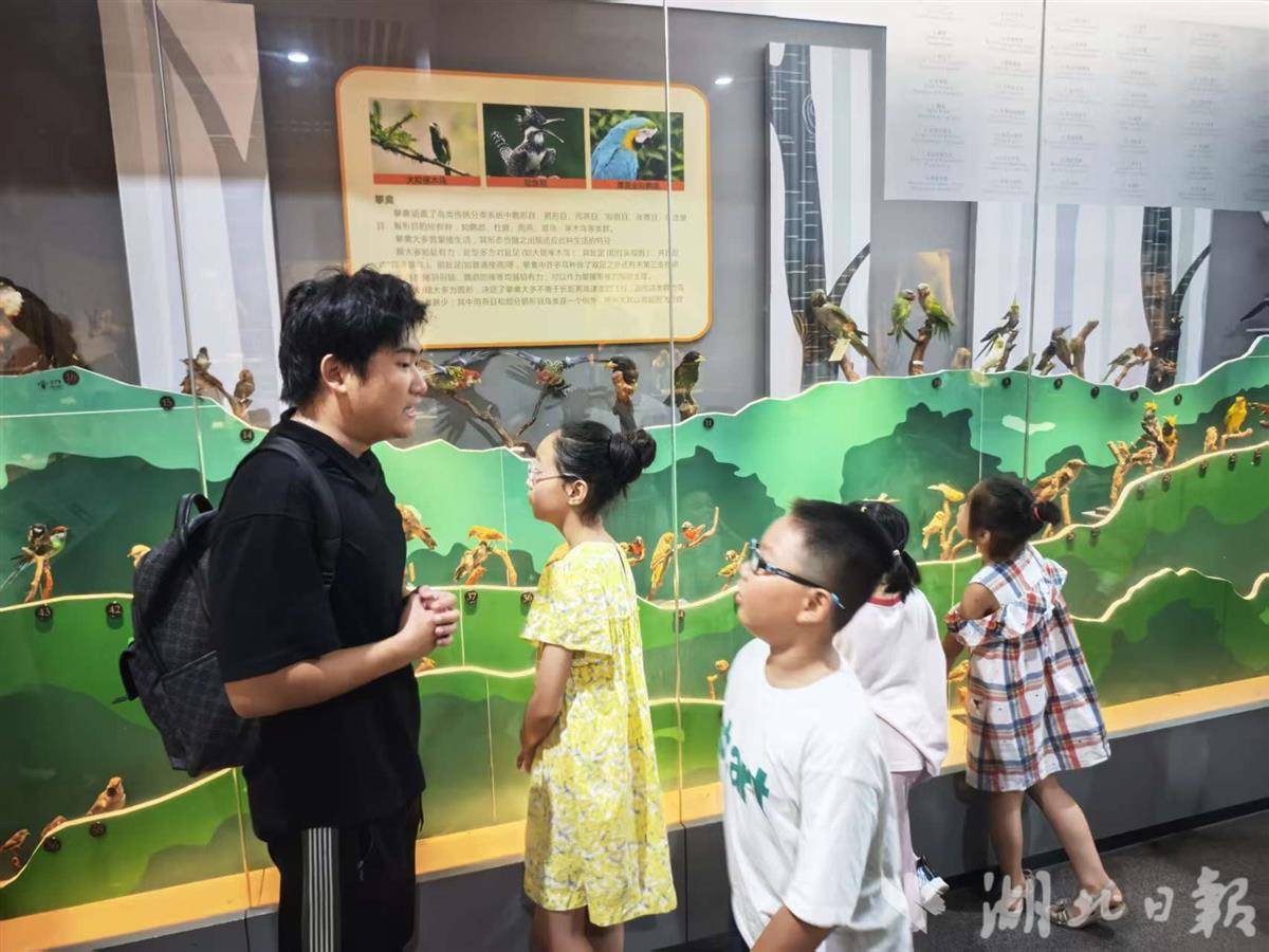 湖北日报讯(记者张华、通讯员程婷、谢觉怡)“原来飞机是‘学鸟飞’才造出来的,太神奇了!”华中农业大学博物馆里,武昌区南湖街道都市桃源社区20余组青少年家庭上了一堂生动的科学课。通过自然观察和科学讲解,这场亲子活动将鸟类生物学知识与航空飞行原理深度融合,内容有料又有趣。