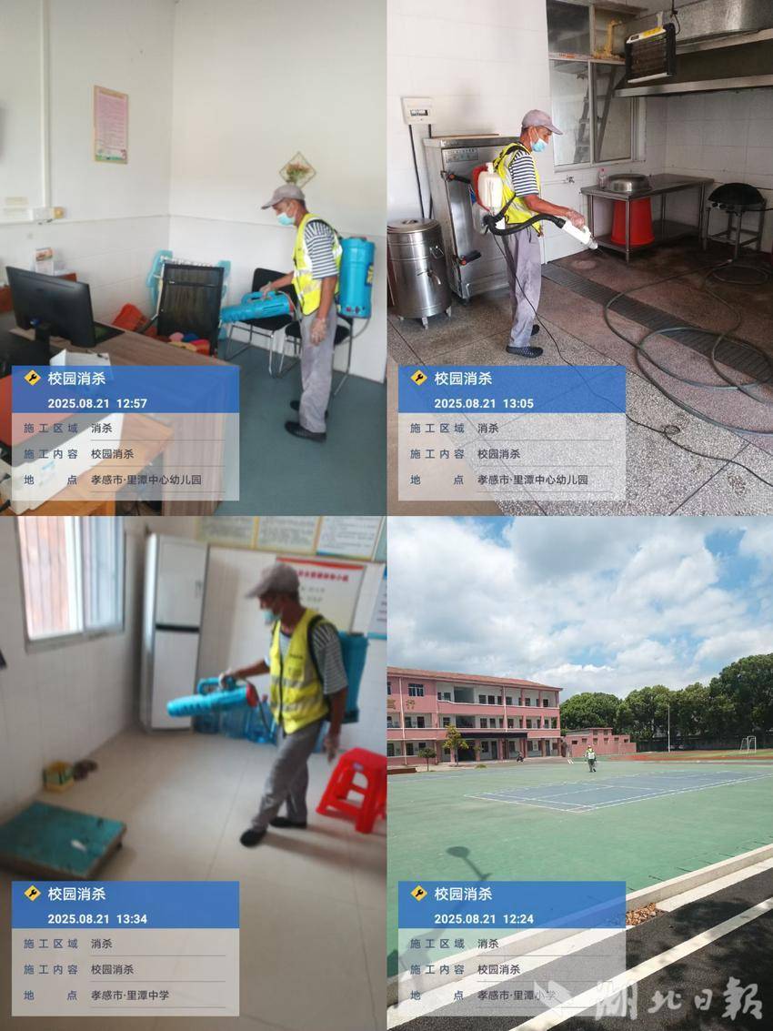 湖北日报客户端讯(通讯员魏文学)为保障2025年秋季学期顺利开学,汉川市里潭乡各中小学及幼儿园于8月21日集中开展校园环境全面消杀工作,全力营造安全、整洁、健康的校园环境。