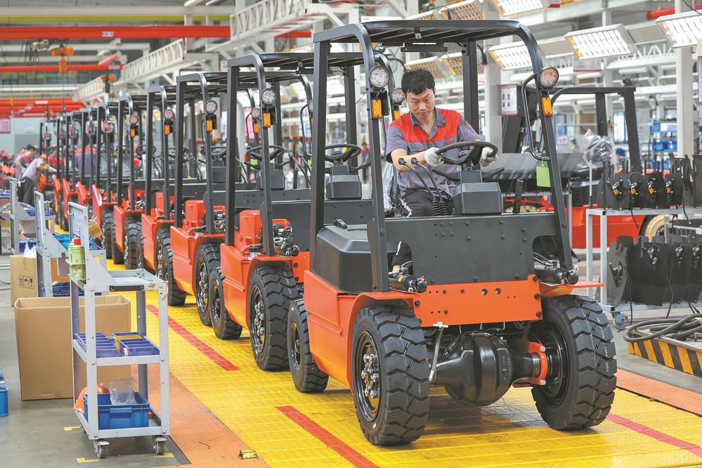 今年6月,湖北中力机械有限公司二期项目正式投入使用,电动叉车产能全面提升,可实现每10分钟下线一台整车。据了解,今年以来,该公司订单不断,其系列电动叉车畅销海外市场。(来源:襄阳日报 李雯艳 摄)