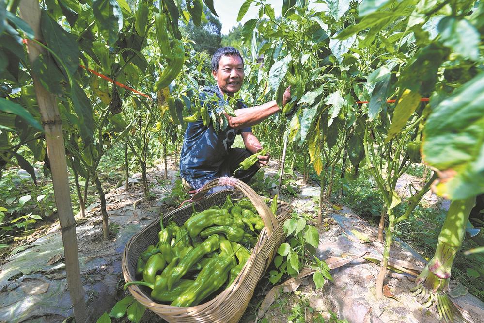 8月20日,在保康县龙坪镇大阳坡村蔬菜种植基地,菜农正在采摘青椒。连日来,平均海拔1350米的保康县龙坪镇,青椒、西红柿等高山蔬菜丰收,田间地头一派繁忙景象。