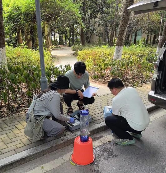 湖北日报讯(通讯员李龙 金朝阳)为积极应对持续高温天气和短时强降水,近日,湖北省武汉市江岸区生态环境监测站在鲩子湖等地开展湖泊水质监测,持续掌握重点湖泊水质变化情况。图为监测人员在高温天气下进行水样现场监测和记录。