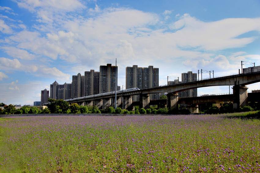 湖北日报客户端讯(通讯员黄红波 陆瑶 张忱)武汉市青山区高铁沿线又悄然有变——曾经零散的空置地块,如今被巧妙点缀成花田绚烂、绿草如茵、彩屋错落的生态景观。8月24日,记者实地探访发现,这一区域不仅串联起十一座城市公园,更通过精细化、“绣花式”的生态修复,将工业锈带转化为清新明亮的“城市秀带”,演绎出一幅动车掠过、景致相随的生动画面。