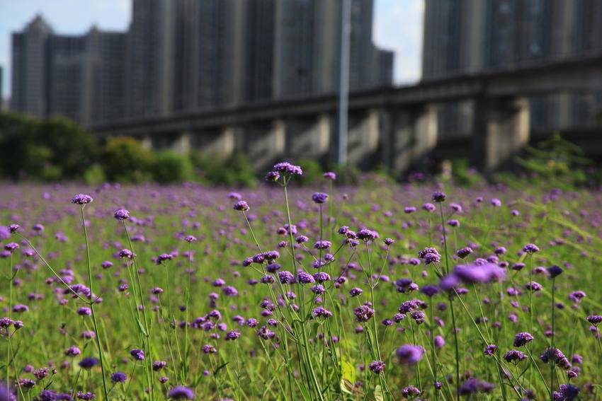在“金物回”地块,连绵的马鞭草与翠芦莉随风起伏,漾成一片淡紫色的海洋。这里紧邻京广高铁,曾是一处工业旧址。自2021年由青山区土地整理储备中心收储以来,历经数年土壤修复与生态回填,终于在2025年初完成整治。随后,撒播花草种子,聘请专业队伍进行养护。如今,2.7万平方米的土地上已结出硕果:高铁乘客目之所见,窗外是一片起伏的花海。