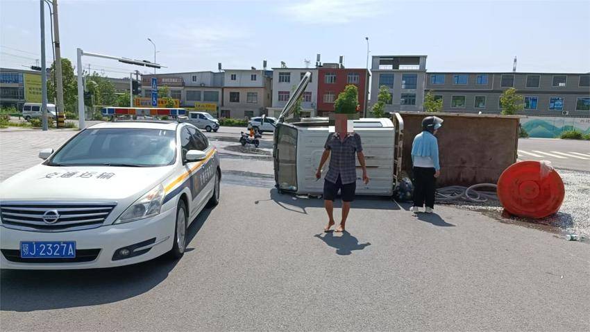 7月18日下午 3 时许,县交通运输综合执法大队执法人员周平同志往常一样开展日常巡查工作,当车行至省道 S201线高铁南站路口时,发现前方一辆轻型货车转弯侧翻在地,车辆轻微变形,货车鱼苗洒落一地。