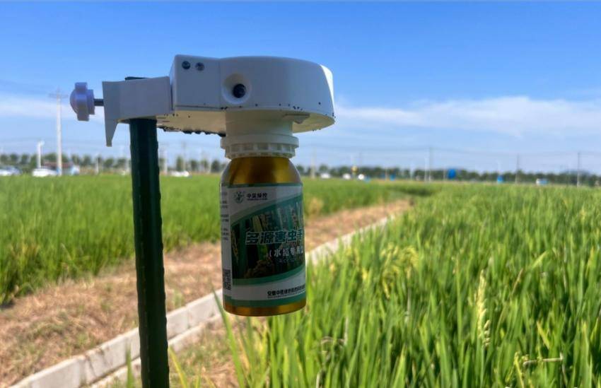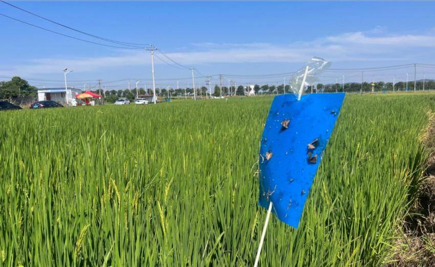 长江日报记者在现场看到,绿油油的稻田间,有规律地布设着不少蓝色的粘虫板,上面已经粘着不少害虫。陈艳刚解释,这是病虫害绿色防控。“除了粘虫板外,我们还安装有太阳能杀虫灯、多源害虫干扰仪等,利用超声波雾化技术释放昆虫性信息素,干扰害虫交配繁衍,降低虫口基数,多管齐下,有效控制二化螟、稻纵卷叶螟、稻飞虱等多种害虫。在将化学农药的使用量减少了10%以上的情况下,病虫危害损失控制在5%以下。”