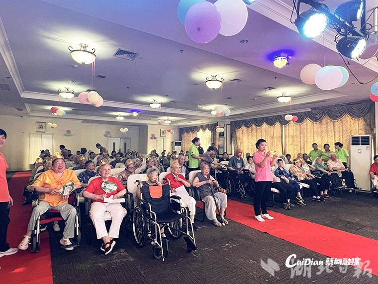 活动现场,节日氛围浓厚,彩色气球与绚丽灯光营造出温馨场景。老人们衣着整洁,欢声笑语间流淌着掩不住的喜悦。