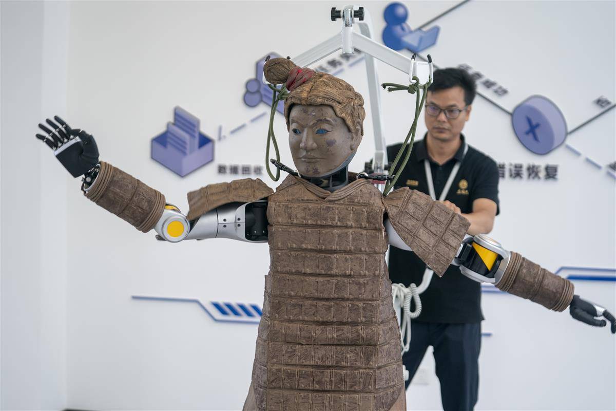 针对越来越火爆的机器人演艺市场,光谷东智正加大投入布局,打造机器人IP,尝试与湖北、陕西等多地历史文化结合,创作出更多、更丰富的机器人文艺作品。(湖北日报全媒记者 魏铼 摄)