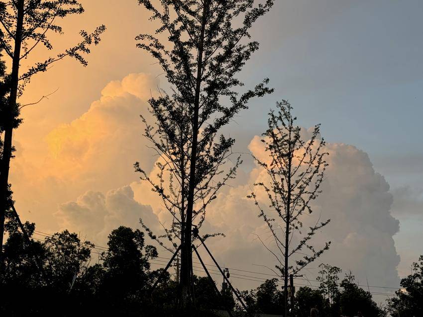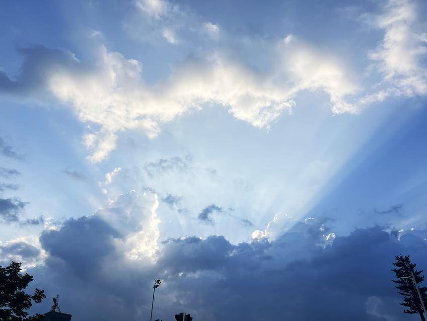 枝江融媒(记者 安超 刘颖杰 何唯 严心怡)连日来,枝江市城区上空的云朵形状各异,像轻盈的棉花,像翻涌的海浪,千变万化,还出现一边下大雨、一边晚霞绚丽的奇特美景,让人心旷神怡,给燥热的暑天添上了梦幻般的色彩。(责编 何唯)
