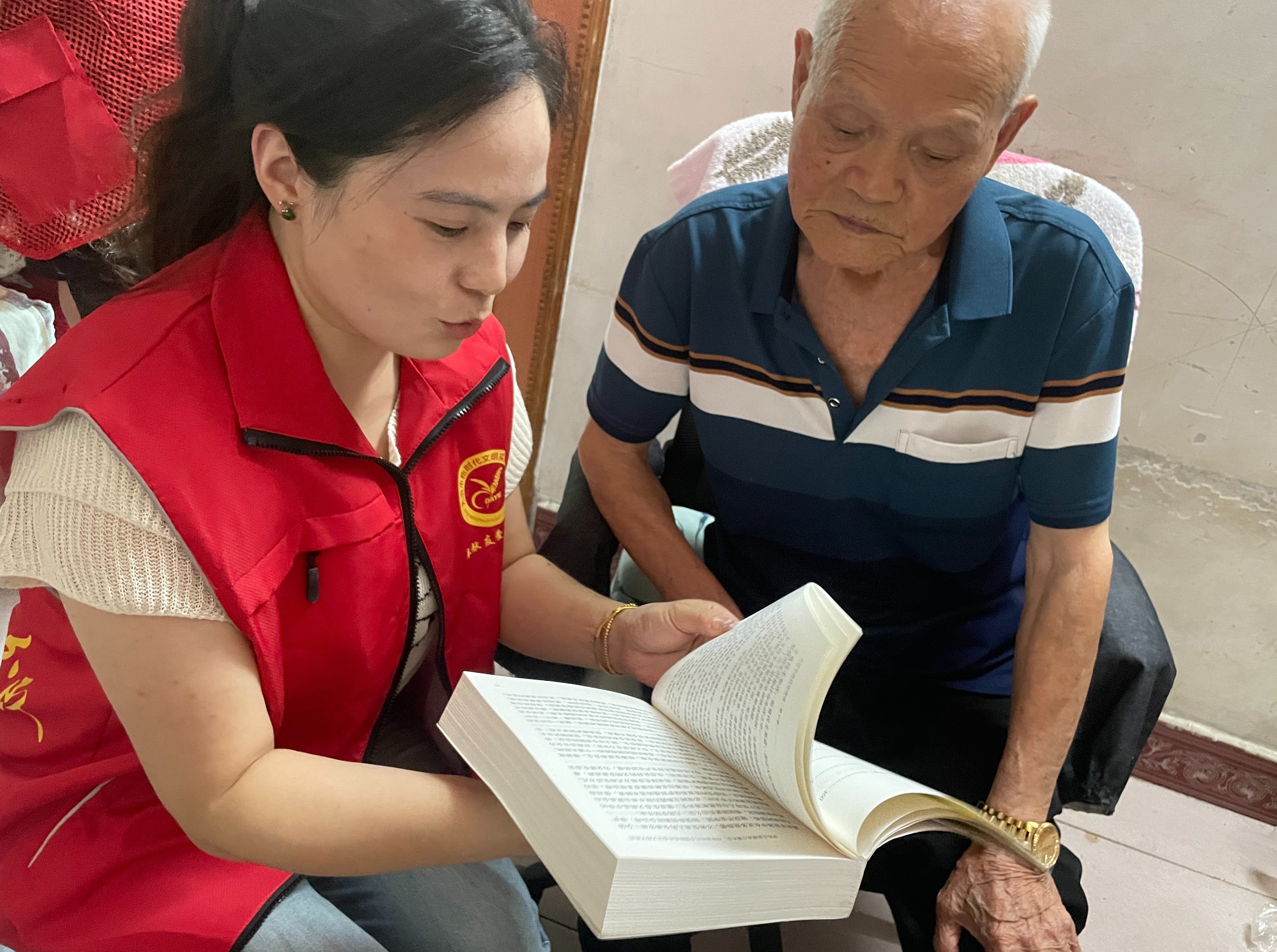 每周三下午,志愿者程萍的脚步声一到巷口,赵永松老人就会扶着藤椅起身——那扇斑驳的木门后,老人早翘首盼着“上课”了。2019年老伴走后,独居的赵永松成了社区党委的“心头挂”,而这位党龄超五十年的老党员,心里也揣着个执念:“就算老了,党的新理论也不能落下。”