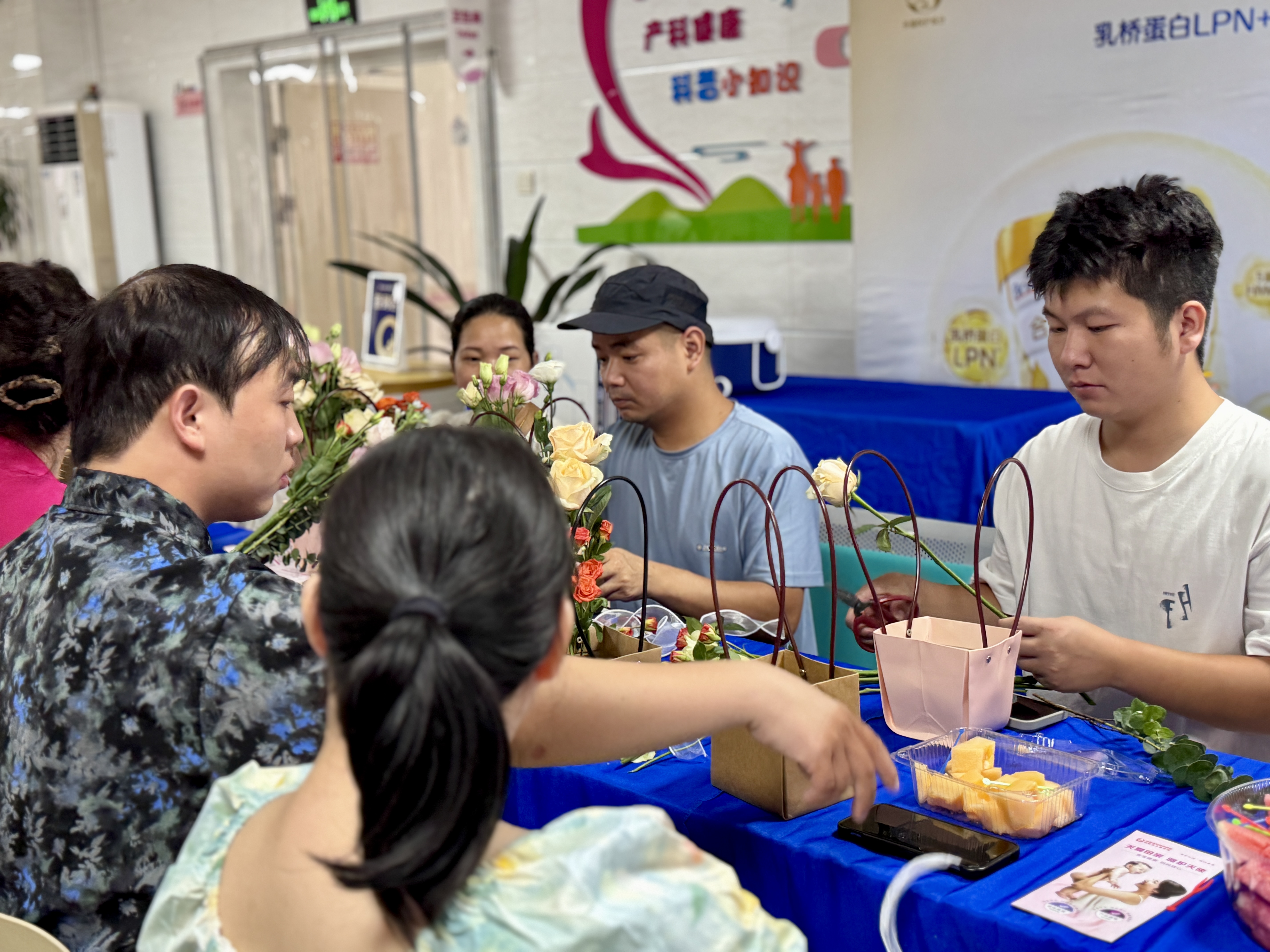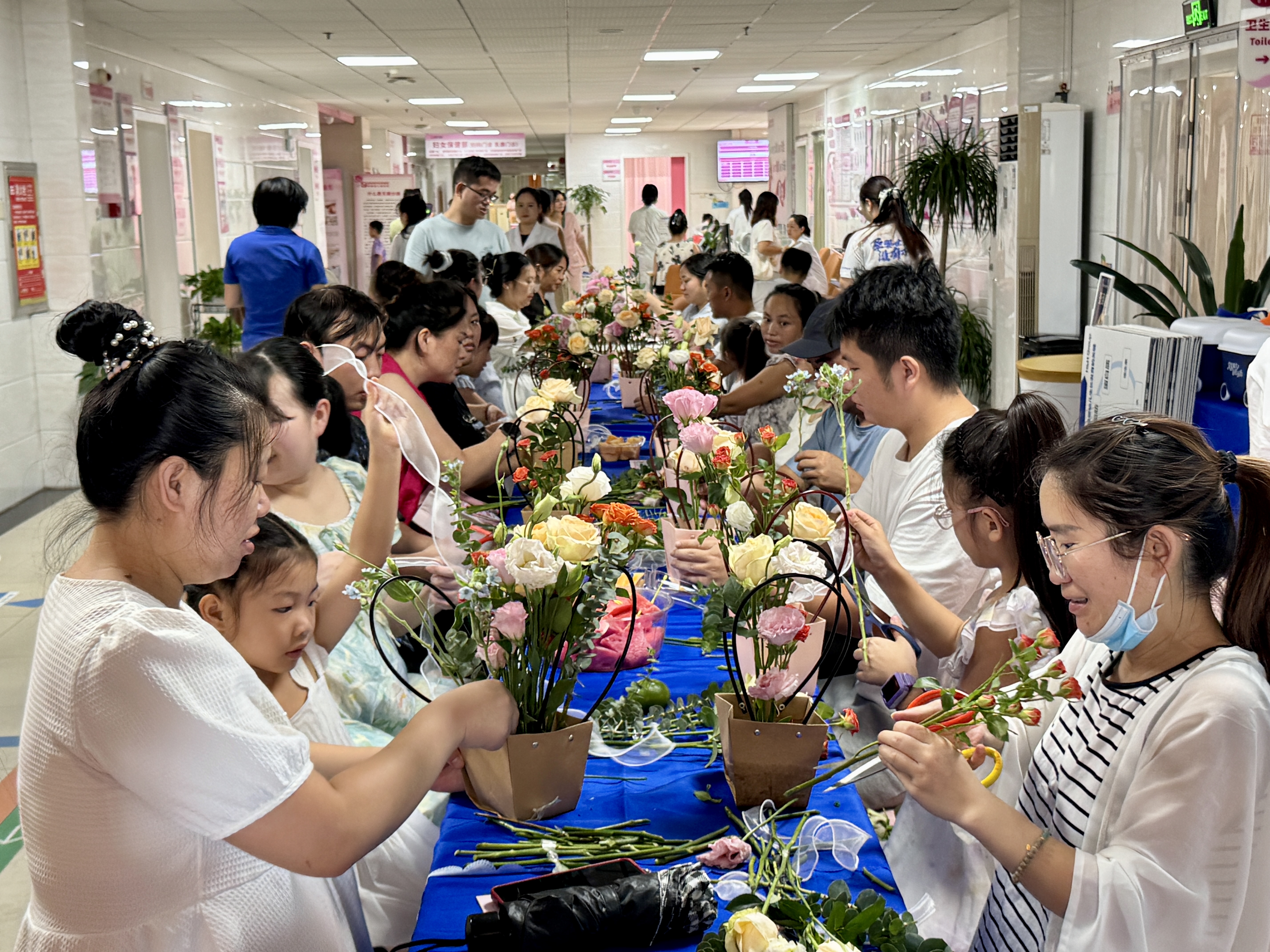 活动在温馨愉悦的氛围中进行,在七夕插花环节,准妈妈们在花艺老师的指导下,亲手制作花艺作品,为每对夫妻留下了独特的七夕纪念。同时还安排了孕期知识问答、深情告白等环节,不仅学习了孕育知识,还增进了夫妻情感。