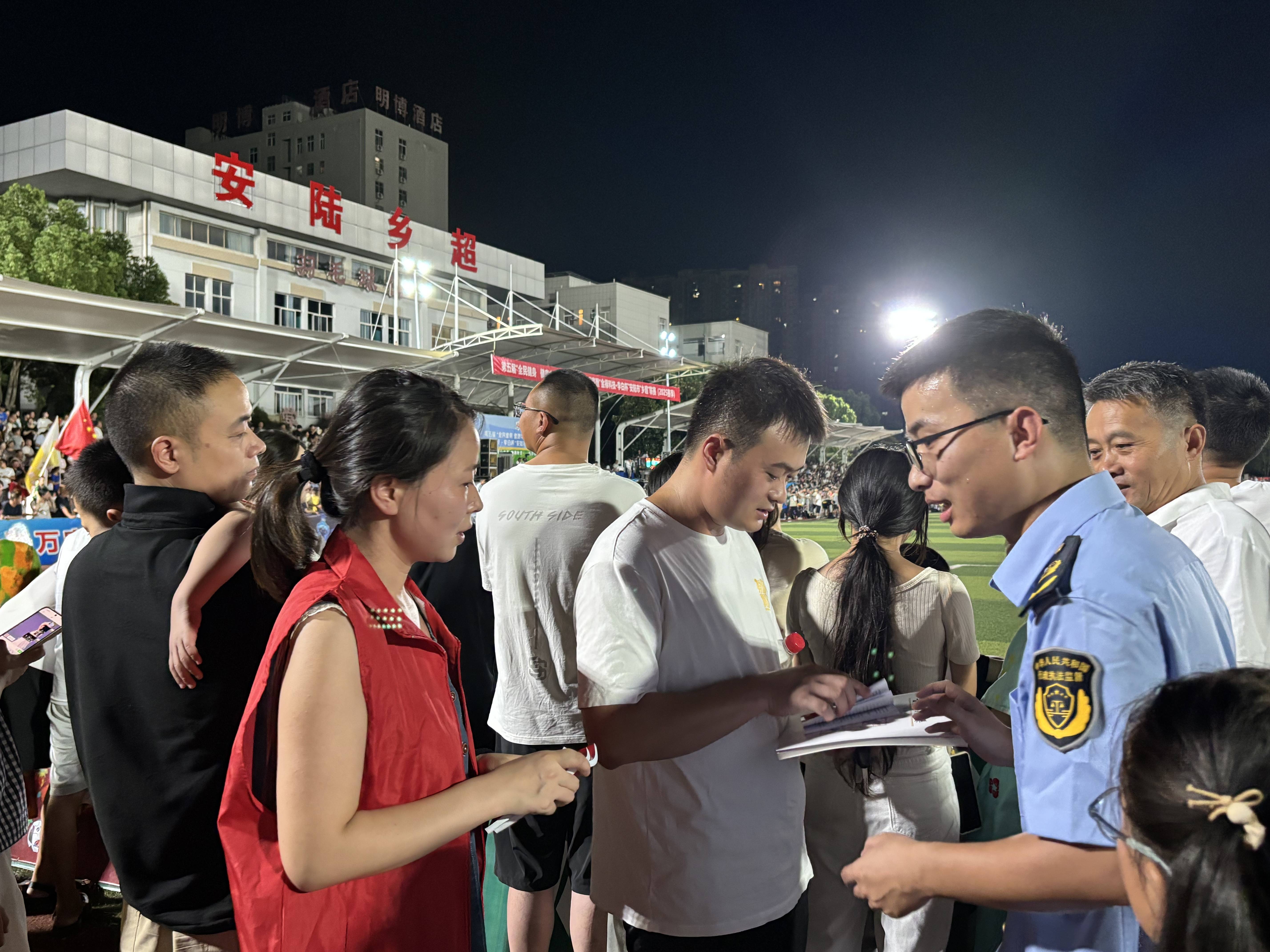 8月27日,安陆市“乡超”联赛第三轮比赛在安陆市中等职业技术学校体育场激情上演,安陆市司法局组织“法律明白人”及“德安法治”志愿服务队,借助安陆乡超观赛热潮,将普法宣传融入其中,为群众送上丰盛的“法治大餐”。